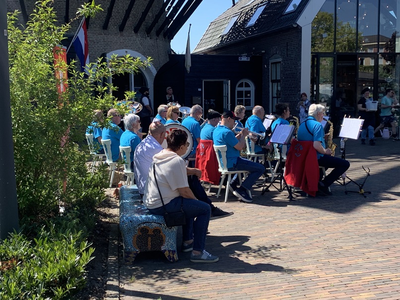 Op 10 mei was het een drukte van belang in en bij de molen. Veel bezoekers die een kijkje wilden nemen. De ‘Foepers’ verzorgden een levendige, muzikale omlijsting van deze zonnige dag.